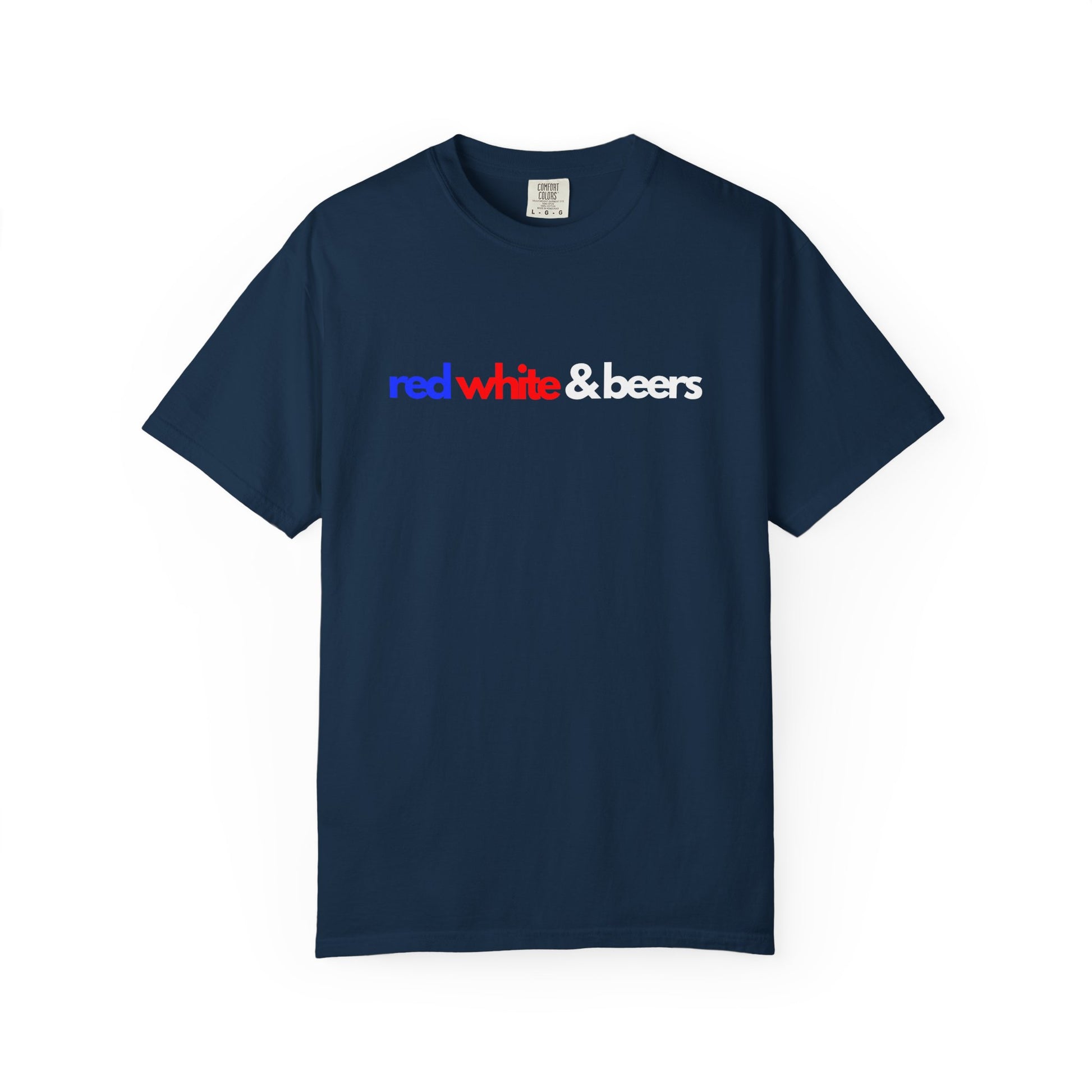 Vintage-style distressed print with bold "Red White & Beers" slogan